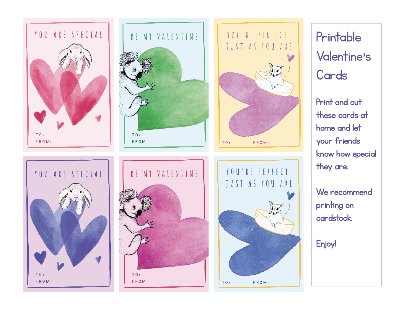 Print these TREE SPIRITS Valentine’s Day cards from your home printer. We recommend printing on cardstock.